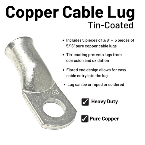 - Pure copper tin-coated cable lugs are ideal for marine and humid environments because the tin coating protects the cable lug from corrosion ad oxidation