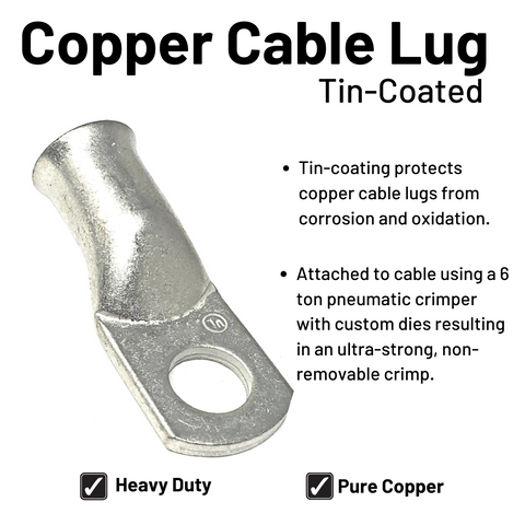 • Pure copper lugs have a tin coating to prevent corrosion and oxidation