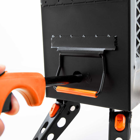 - COMPACT & DURABLE - Tried-and-true ammo can design, powder-coated black steel, stows, and fits anywhere. The collapsible legs and removable lid are easy to set up and quick to break down.